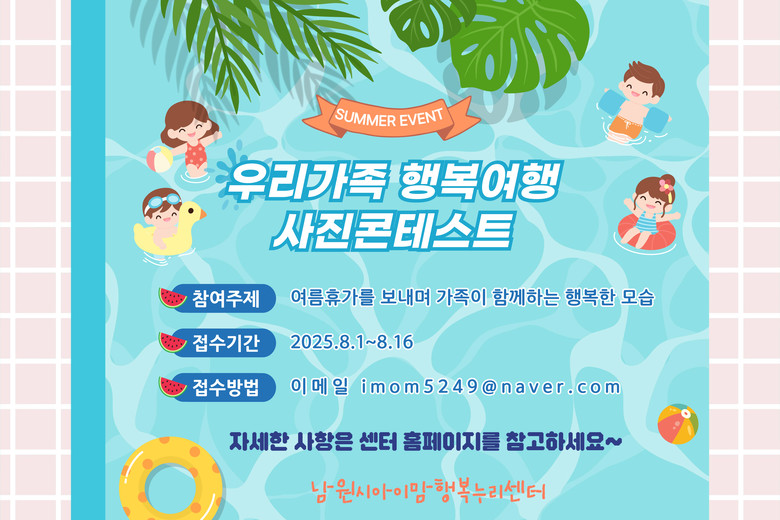 남원시 아이맘행복누리센터(센터장 곽미라)는 “이번 행사를 통해 영유아들이 남원시에서 즐거운 여름방학 추억을 만들 수 있기를 희망한다”라고 밝혔다.