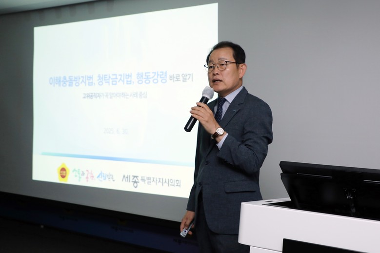 특강은 조재광 청렴교육 전문강사가 맡아, 「부패방지권익위법」, 「이해충돌방지법」 등 주요 법령과 최근 판례‧실무 사례 중심으로 이해를 높였다.