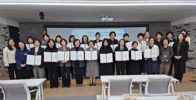 [경남 세계타임즈=최성룡 기자] 경상남도교육청(교육감 박종훈)은 27일(금) 경상남도교육청 교육연수원 에듀테크센터 2층 다산홀에서 ‘2026년 경상남도교육청 성사안대응지원단 피해조사위원(이하 피해조사위원)’ 28명에게 위촉장을 전달하였다.