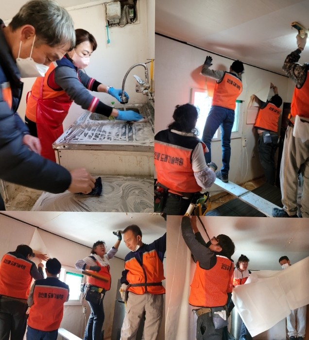 이날 봉사에는 장인들도배기술학원 김정자 원장과 집안청소봉사단 김호찬 단장을 비롯해서 자원봉사자 15명이 도배와 집안청소봉사를 약4시간동안 진행을 하였다.