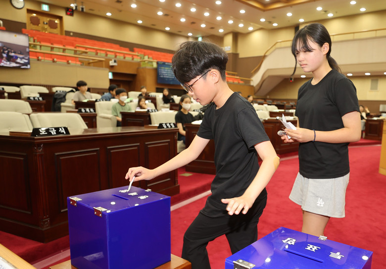 청소년 의회교실은 1일 도의원이 되어 본회의장에서 의장 선거, 안건처리, 2분 자유발언 등 의정활동을 하는 도의회 대표 학생 체험 프로그램이다.