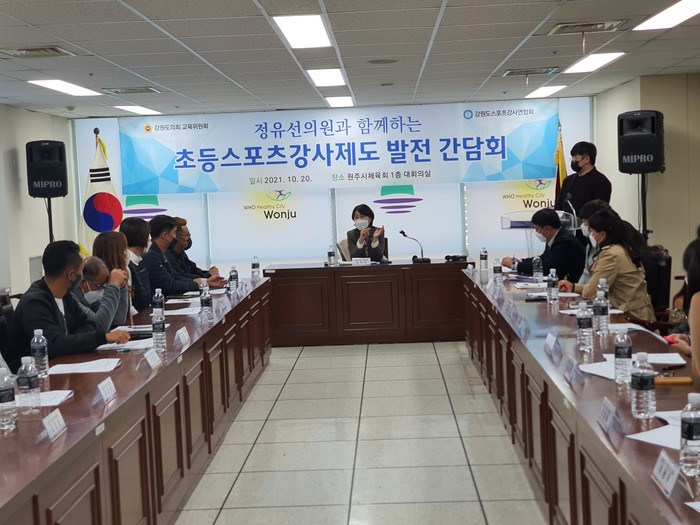 강원도의회 교육위원회 정유선 의원은 “초등학교 현장에서 초등체육 활성화를 위해 헌신하는 초등스포츠강사 제도 발전을 위해 지난 8월 강원도 교육청과 간담회를 추진하는 등 강원도 교육청의 적극행정을 요청하였고, 이번 제도발전 간담회를 통해 초등스포츠강사들의 고용안정과 처우개선을 위해 노력하겠다.”라고 밝혔다.