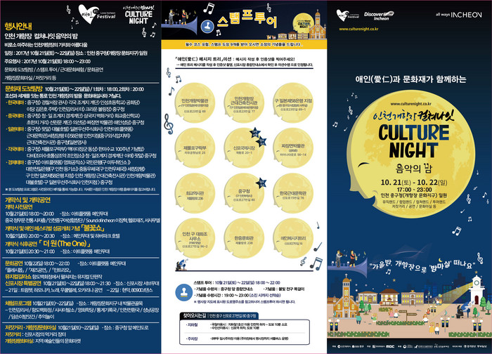 문화재와 함께하는 스토리텔링 도보탐방 등 사전신청 프로그램을 포함한 자세한 일정 및 프로그램은 인천 개항장 컬쳐나잇 음악의 밤 공식 홈페이지 www.culturenight.co.kr을 통해 확인할 수 있다.