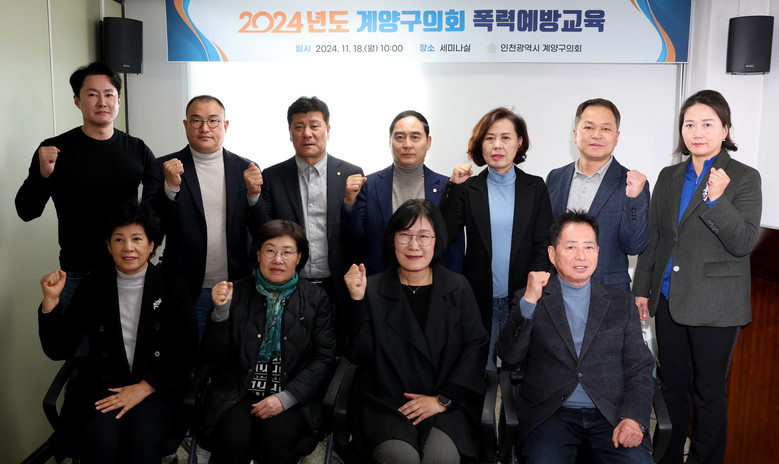 [계양구 세계타임즈=심하린 기자] 인천광역시 계양구의회(의장 신정숙)는 지난 8일과 18일, 양일간 의회 세미나실에서 의원들을 대상으로 부패 방지와 폭력예방 교육을 실시했다.