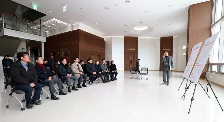 이어서 기획경제위원회는 공공기관 통합청사를 방문했다. 해당 청사는 기존 민간 건물을 매입해 공공기관 청사로 활용하기 위해 조성된 것으로, 현재 일부 층은 임대 운영 중이며, 5층부터 7층까지는 리모델링을 거쳐 도 산하 기관이 입주할 예정이다.
