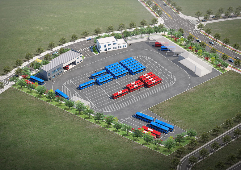 총 사업비 241억 원이 투입된 금호워터폴리스 시내버스 공영차고지는 부지면적 12,982㎡, 건축 연면적 903㎡의 규모로, 관리동 및 정비동은 물론 83면의 주차공간과 수소 및 CNG 충전시설을 갖추고 있다.