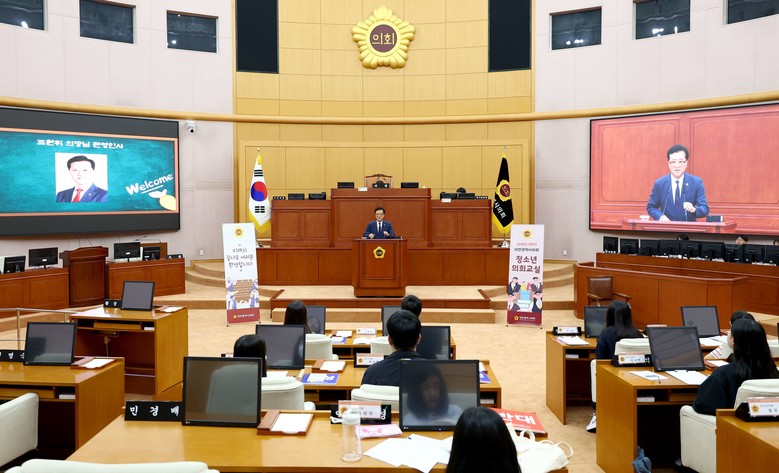 [대전 세계타임즈=이채봉 기자] 대전시의회 조원휘 의장(유성구3, 국민의힘)은 22일 대전시의회 본회의장에서 열린 ‘2025년 상반기 청소년의회교실’에 참석해 지역 학생들과 직접 소통하는 시간을 가졌다.