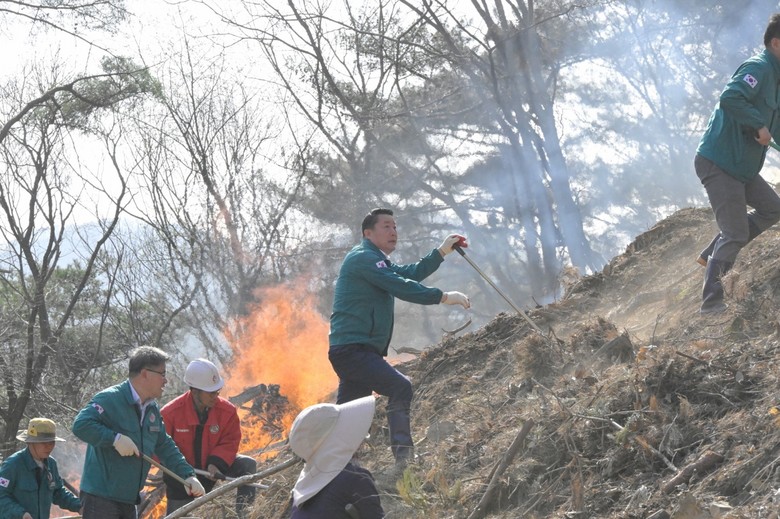 이날 현장에 최영일 군수를 비롯해 공무원 205명, 산불전문진화대(군청) 24명, 산불전문진화대(읍면) 12명, 이동감시원 14명, 소방서 23명, 경찰 13명, 기타 50명 등 350여명이 산불진화에 투입됐다.