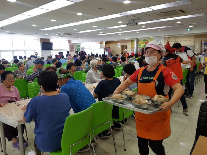 이날 봉사에는 밴드 회원 60명이 참석해서 1층 미용봉사, 2층 위문공연 봉사, 5층 삼계탕 300마리 봉사를 대덕구장애인들에게 즐거움과 행복을 전했다.