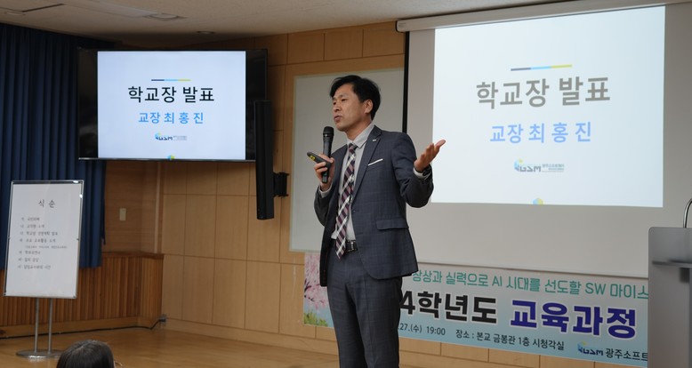 [광주 세계타임즈=손권일 기자] 광주소프트웨어마이스터고등학교(이하 광주소마고)가 지난 27일 2024학년도 학교 교육과정 설명회를 개최했다.