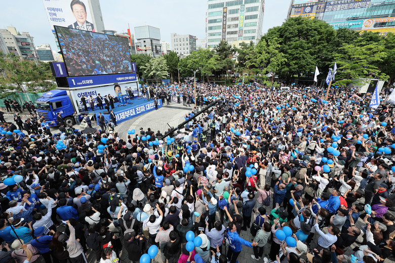 [세계타임즈 = 심귀영 기자] 더불어민주당 이재명 대선 후보는 21일 인천을 찾아 사흘째 수도권 표심 공략을 이어갔다.이 후보는 이날 오후 인천 남동구와 부평구, 서구를 차례로 방문했다. 저녁에는 자신의 국회의원 지역구인 계양구에서 유세를 마무리한다.