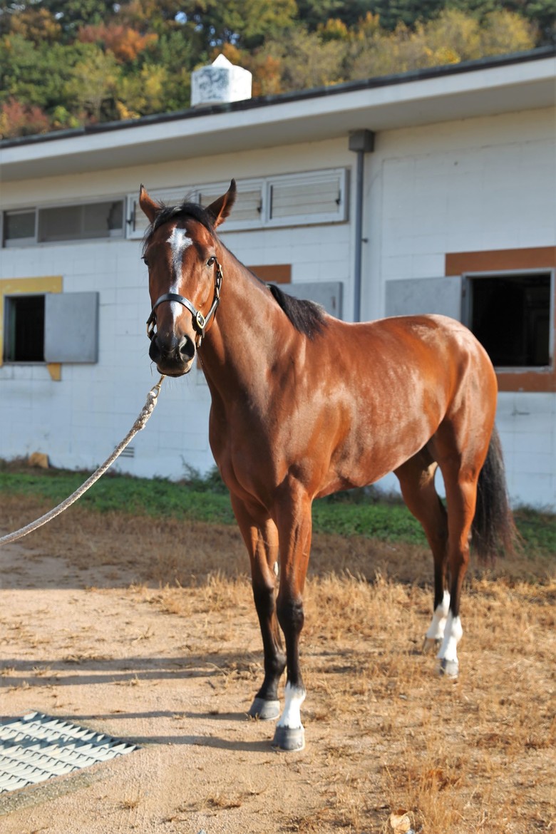 지난 10월 ‘아름다운질주Stakes’에 유일한 암말로 출전해 당당히 3위를 차지했다. 당시 경주 초반에는 다른 말들에 둘러싸여 진로가 막힌 듯 보였지만, 뒤쪽에서 침착하게 상황을 살피며 기회를 노리다가 4코너에서 외곽으로 빠져나왔다. 이후 직선주로에서 폭발적인 스피드로 순식간에 도약해 9위에서 3위까지 올라섰다. 침착함과 뒷심이 돋보이는 경주전개였다. 그전 주행심사와 데뷔전에서도 이와 비슷한 전개로 우승을 차지했는데, 이번 경주 역시 탁월한 뒷심을 활용한 막판 스퍼트로 승부수를 두지 않을까 싶다.