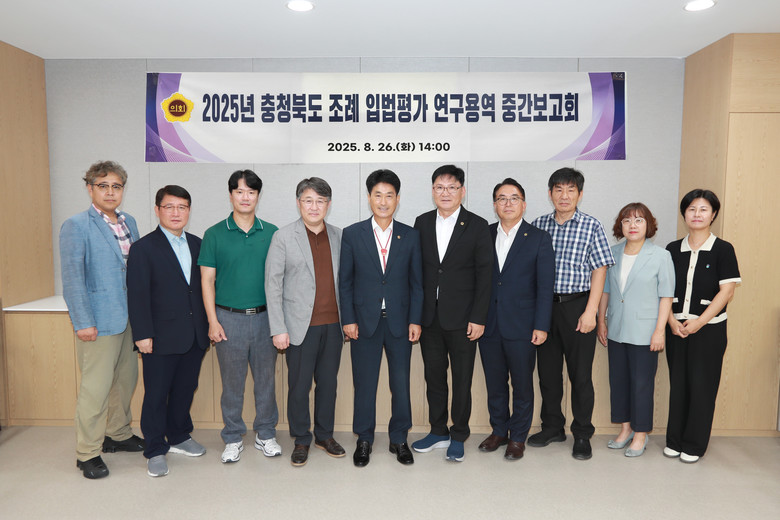 [충북 세계타임즈=이현진 기자] 충북도의회(의장 이양섭)는 26일 의회 신청사 회의실에서 ‘충청북도 조례 입법평가 연구용역’ 중간보고회를 개최했다.