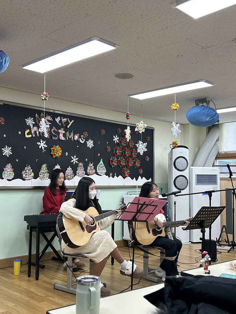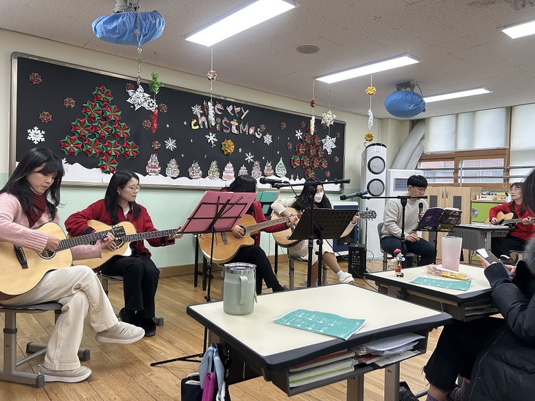 [파주시 세계타임즈=송민수 기자] 한가람초(교장 이강수)는 지난 12월 19일(목) 오후 3시에 5학년 2반 교실에서 교사 기타동아리 선생님들의 작은 공연이 열렸다. 이번 공연은 학생과 선생님들에게 음악의 즐거움을 전달하고, 교사와 학생 간의 소통을 증진하기 위해 마련되었다.