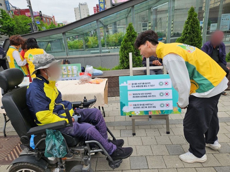 이번 캠페인은 10명의 봉사자가 참여해 시민들에게 탄소중립의 중요성과 일상에서 실천 가능한 방법들을 소개했다. 퀴즈 형식을 활용해 시민들의 흥미를 유도하고 정답을 맞추며 내용을 쉽고 재밌게 설명했다. 안내 내용으로 ▲재활용품 분리배출 ▲탄소중립 포인트 앱 사용 ▲일회용품 대신 텀블러 사용 ▲장바구니 사용 ▲배달 음식 다회용기 사용 안내 등을 소개하며 주민들에게 기후 위기에 대응하는 작은 실천 방법을 강조했다.