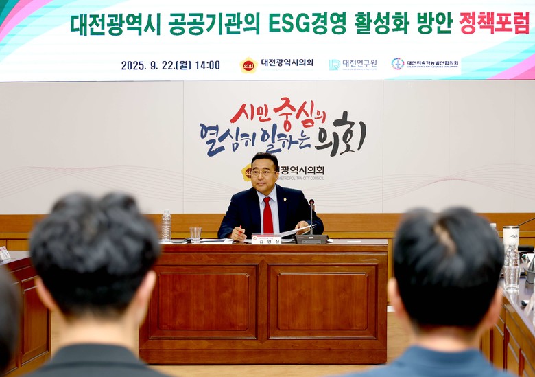 이번 포럼은 대전시의회 산업건설위원회·대전연구원·대전지속가능발전협의회가 공동 주관했으며, ESG(환경·사회·지배구조) 경영을 공공기관에 도입·확산해 책임 있는 행정과 지속가능한 지역 발전을 모색하기 위해 마련됐다.
