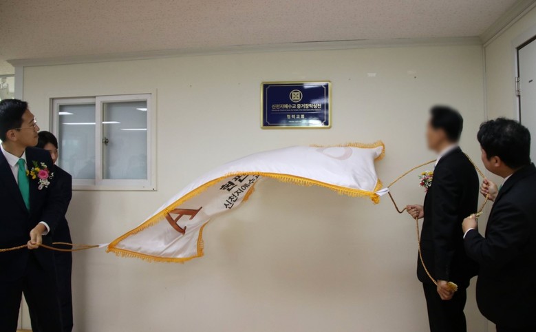 | ▲지난 17일 ‘협력교회로의 간판 교체 협약 체결 및 현판 제막식’에서 신천지예수교 증거장막성전 협력교회 현판 제막이 진행되는 모습 [사진 제공 = 신천지 광명교회] |
