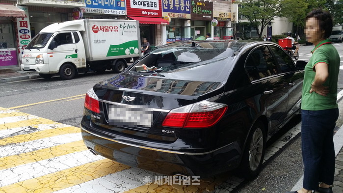 | 파손차량 및 소유주 사진=이영진 기자 ▲ © 세계타임즈 |
