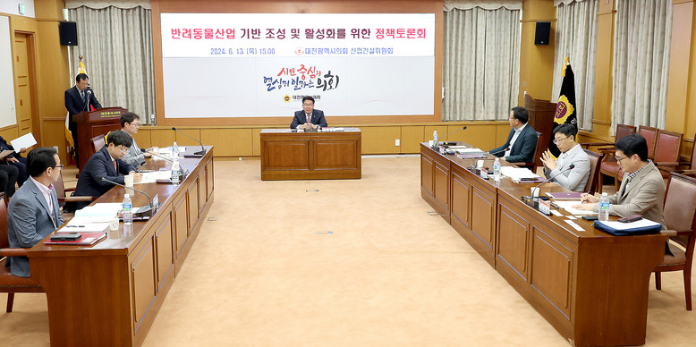 [대전 세계타임즈=이채봉 기자] 대전시의회 산업건설위원회에서는 송활섭 의원(국민의힘, 대덕구2) 주재로 13일 소통실에서‘반려동물산업 기반 조성 및 활성화를 위한 정책토론회’를 개최했다.