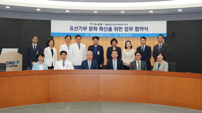 이번 협약식은 ‘신탁을 통한 유산 기부문화’ 정착과 저변 확산을 위해 마련됐으며, 분당서울대학교병원 송정한 원장, 하나은행 김영훈 자산관리그룹장을 비롯한 양 기관 관계자들이 참석한 가운데 진행됐다. 양 기관은 이번 협약을 계기로 ▲유언대용신탁 등 기부신탁상품 추천 ▲ 신탁기부와 관련한 법률 및 세무 등 자문 ▲병원 전용 신탁상품 개발 ▲기부자 및 잠재기부자의 유산 및 신탁기부 문의 시 정보안내 등에서 협력하기로 했다.
