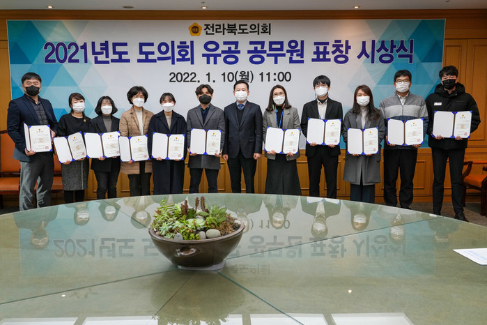 올해 유공 선정자는 ▲전라북도 정무기획과 정정금 ▲공보관실 구대성 ▲자치행정과 손인준 ▲일자리경제정책관실 윤현선 ▲도로관리사업소 이창우 ▲소방본부 방호예방과 임대근 ▲소방본부 구조구급과 이광진 ▲소방본부 종합상황실 강경옥 ▲도교육청 정책공보관 송한섭·강채완·김태은 ▲도의회 총무담당관실 은수정·임재엽 ▲의사담당관실 이명희 ▲입법정책담당관실 안숙영 ▲운영수석전문위원실 김선자 ▲환경복지전문위원실 김태균 ▲농산업경제전문위원실 양용선 등 총 18명이다.