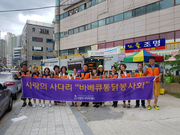 [대전=세계타임즈 이장성 기자] 7천명 SNS 대전시 봉사단체 사랑의 사다리 밴드(리더 이정제)는 23일 오후1시~오후5시 동구 판암동에 위치한 보문장애인자립생활센터(센터장 신인수)에서 통닭봉사로 우리 사회의 따뜻한 사랑을 전달하였다.
