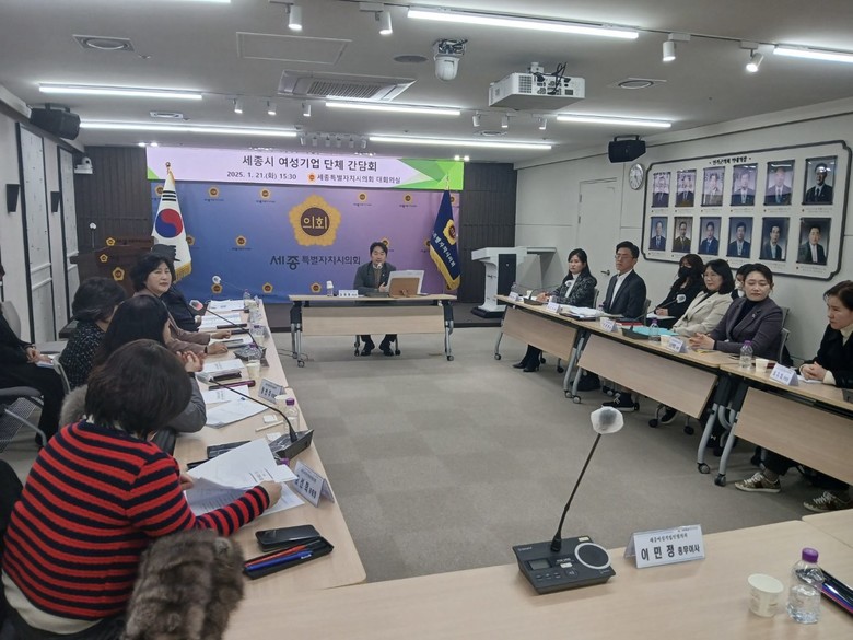 [세종 세계타임즈=이채봉 기자] 세종특별자치시의회(의장 임채성) 산업건설위원회(위원장 김재형)는 21일 시의회 청사 대회의실에서 행정복지위원회 여미전 의원과 함께 세종시 여성기업 단체와의 간담회를 개최했다.