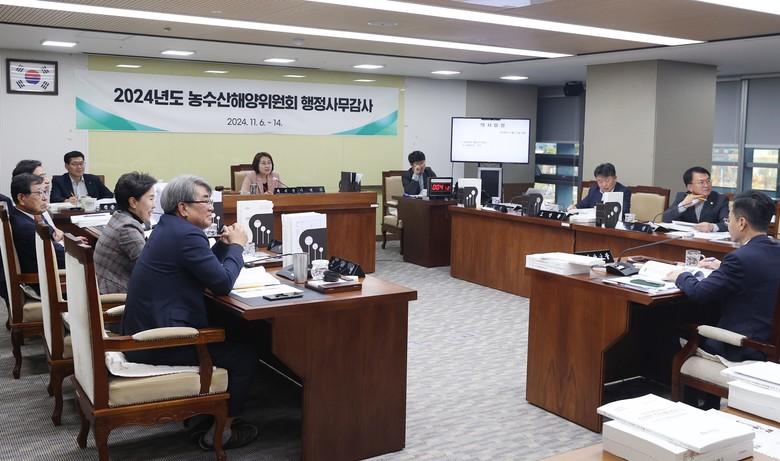 [충남 세계타임즈=백택기 기자] 충남도의회 농수산해양위원회(위원장 이연희)는 12일 충청남도 농축산국(농업정책과, 스마트농업과, 농식품유통과, 농촌재구조화과)과 스마트본부에 대한 2024년도 행정사무감사를 펼쳤다.