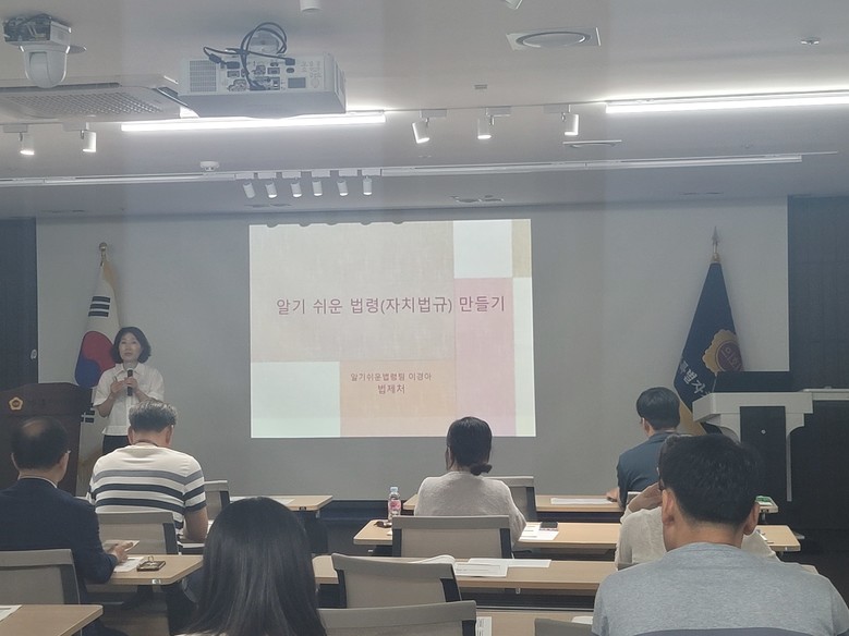 교육 강사로 위촉된 법제처 조지은 서기관과 이경아 주무관은 자치법규 입안을 위한 기준 원칙을 포함한 전반적인 내용을 알기 쉽게 설명했다.