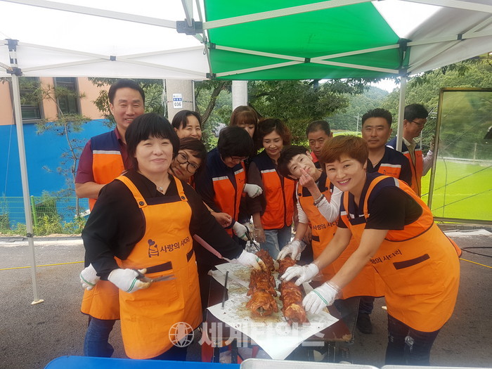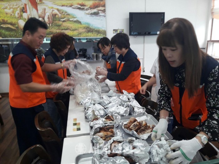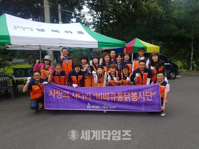 [대전=세계타임즈 이장성 기자] 5천명의 회원들이 활동하는 자발적인 SNS봉사 밴드인 사랑의 사다리 밴드(리더 이정제)는 30일 오전 10시~오후 1시 대전광역시 서구 원정동에 위치한 지적장애인 거주시설인 행복마을(원장 박광수)과 중증 장애인 거주시설인 행복누림(원장 윤성은)에서 현장에서 직접 구은 바베큐 통닭 120마리를 전달하면서 훈훈한 이웃사랑을 전했다.