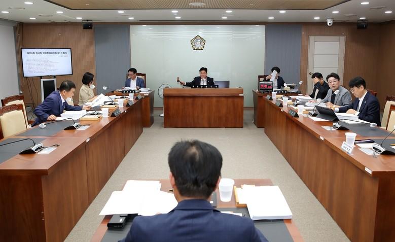 [충남 세계타임즈=백택기 기자] 충남도의회 복지환경위원회(위원장 김민수)는 4일 제355회 임시회 1차 회의를 열고 복지보건국‧여성가족정책관‧기후환경국 소관 조례안과 민간위탁동의안, 2025년도 복지보건국‧기후환경국 출연계획안 등 17개 안건을 심사했다.