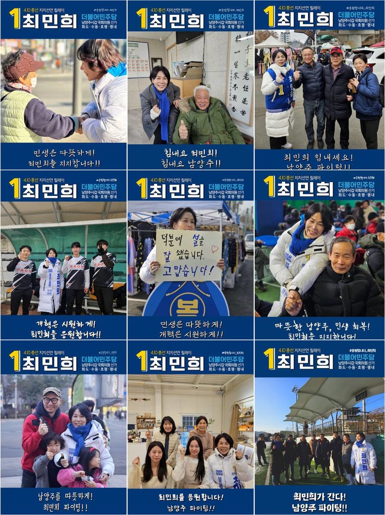최 예비후보는 그동안 카카오톡 등 SNS를 통해 남양주 시민들로부터 받는 지지와 응원 메시지를 공유하며 릴레이지지 캠페인을 이어왔다.