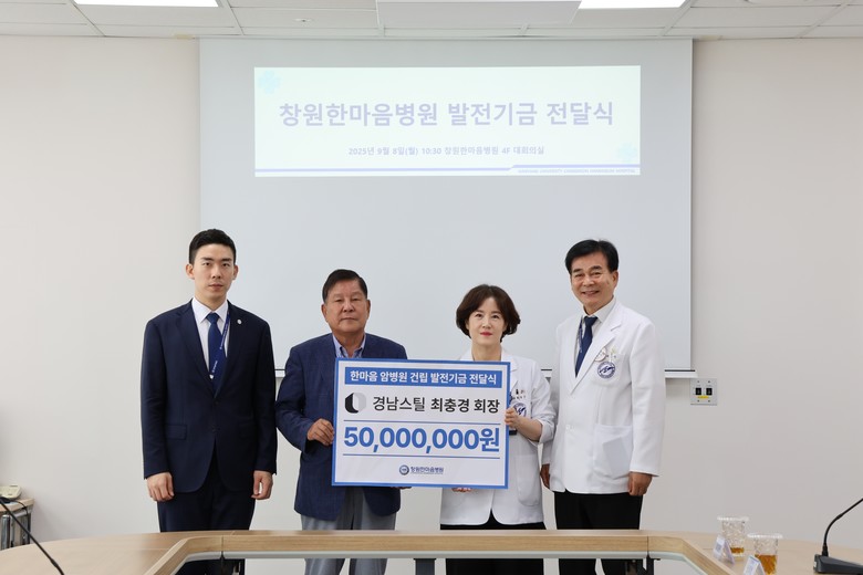 경남스틸은 지역사회 발전과 공익을 위한 다양한 사회공헌 활동을 꾸준히 이어온 기업으로, 이번 기부를 통해 창원한마음병원 암병원 건립에 힘을 보태게 됐다.