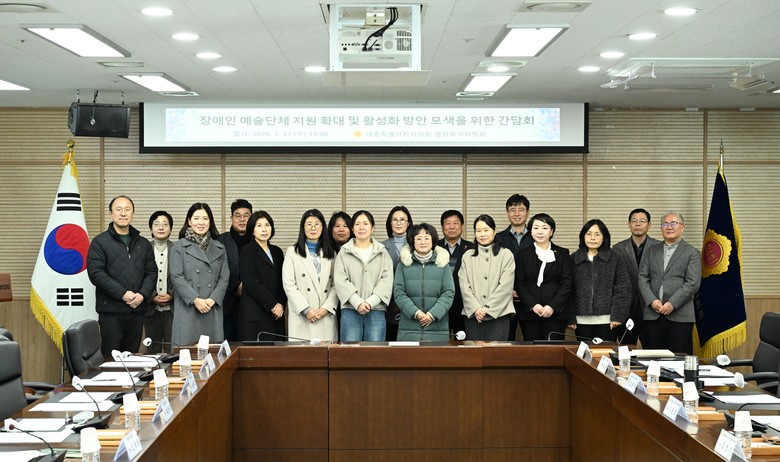 [세종 세계타임즈=이채봉 기자] 세종특별자치시의회(의장 임채성) 행정복지위원회(위원장 김현미)는 21일 의회 의정실에서 ‘발달장애인 예술단체 지원 확대 및 활성화 방안 모색 간담회’를 개최하고, 장애 예술인의 지속가능한 활동을 위한 정책적 지원 방안에 머리를 맞댔다.