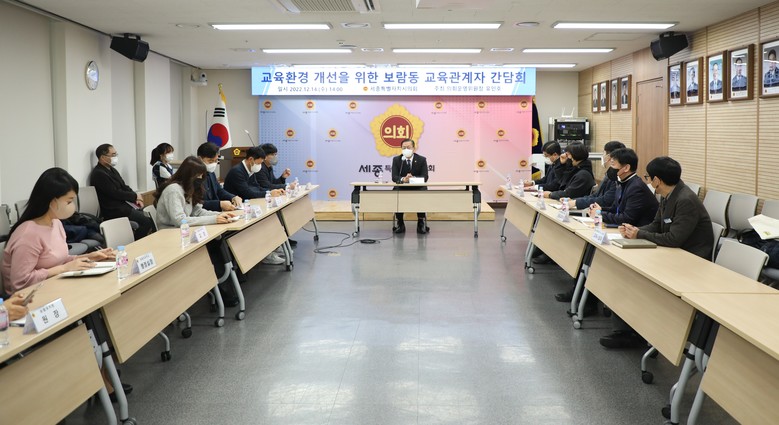 [세종 세계타임즈=이채봉 기자] 유인호 세종시의회 운영위원장은 14일 의회청사 대회의실에서 세종시교육청 및 보람동 학교 교육기관 관계자와 ‘2023년 교육환경 개선을 위한 간담회’를 개최했다.