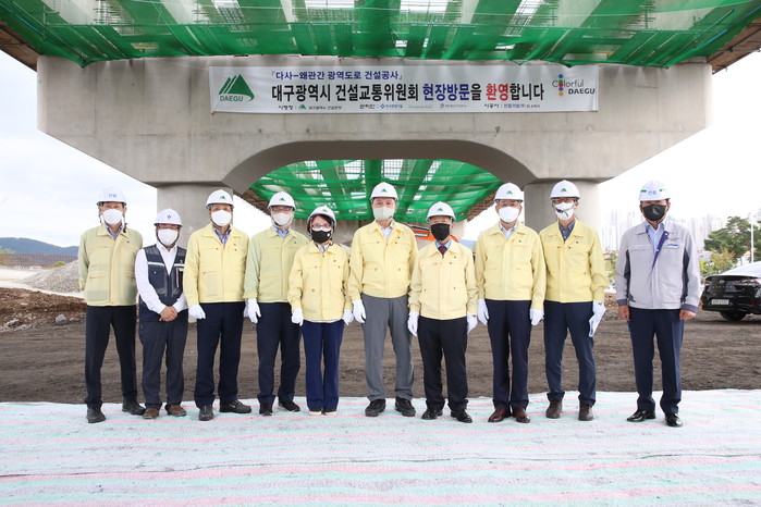 [대구=세계타임즈 한성국 기자] 대구광역시의회 건설교통위원회(김원규 위원장)는 제286회 임시회 기간 중 10월 13일(수) 다사~왜관 간 광역도로 건설사업 현장을 직접 찾아 사업 진행 상황을 점검하고, 차질 없는 사업 추진을 당부했다.