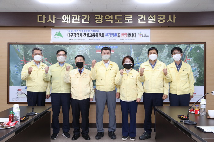 이날 현장을 방문한 건설교통위원들은 대구시 건설본부 관계자로부터 다사~왜관 간 광역도로 건설사업의 추진현황과 향후 계획에 대해 보고받고 현장을 시찰했다.