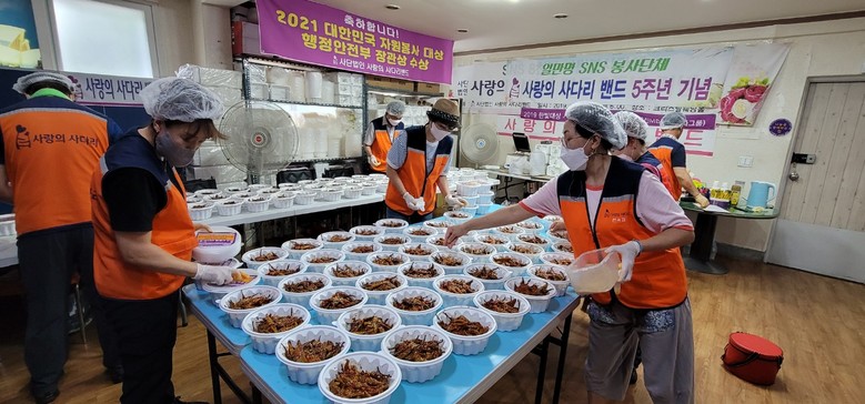 [대전 세계타임즈=이채봉 기자] 6년째 꾸준히 대전시 소외계층을 위해서 다양한 봉사를 펼치고 있는 대전시 봉사단체 사랑의 사다리 밴드(리더 이정제)는 25일 고추지 무침 100개를 만들어서 중리종합사회복지관(관장 신성호)에 전달을 하면서 우리 사회의 따뜻한 사랑을 실천하였다.