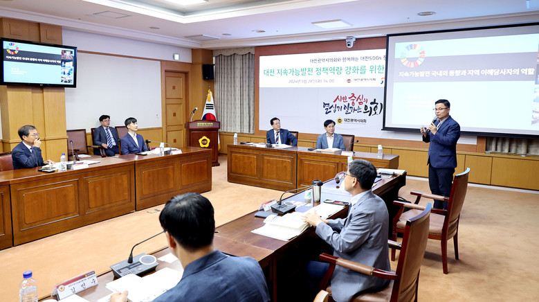 윤희철 센터장은 대전시의회의 역할로서 행정조직의 칸막이 한계를 넘어 각종 자원과 역량을 상호 연결하는 연결자 역할을 주문했으며, 조영준 사무국장은 안양시의 지속가능발전협의회와 지방의회 간 협력 사례를 소개했다. 김민수 분과위원장은 시민사회의 역량 강화를 위한 지원 방안을 제안했다. 이어진 토론에서 참석자들은 대전시의회가 보다 적극적으로 대전지속가능협의회뿐만 아니라 지역사회와의 연계·협력을 확대하고 심화할 필요가 있음을 강조했다.
