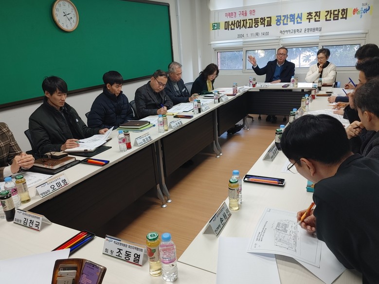 마산여자고등학교에서 열린‘마산여고 공간혁신사업 추진 간담회’에는 정 의원을 비롯해 조동열 학운위 마산지역협의회장, 김천국 마산여고 학교운영위원회 위원장, 류해숙 경상남도교육청 미래학교추진단장, 이기옥 체육교육담당 장학관, 유상조 창원교육지원청 행정지원국장, 이철호 시설2과장, 홍정희 마산여자고등학교장 등이 참석했다.