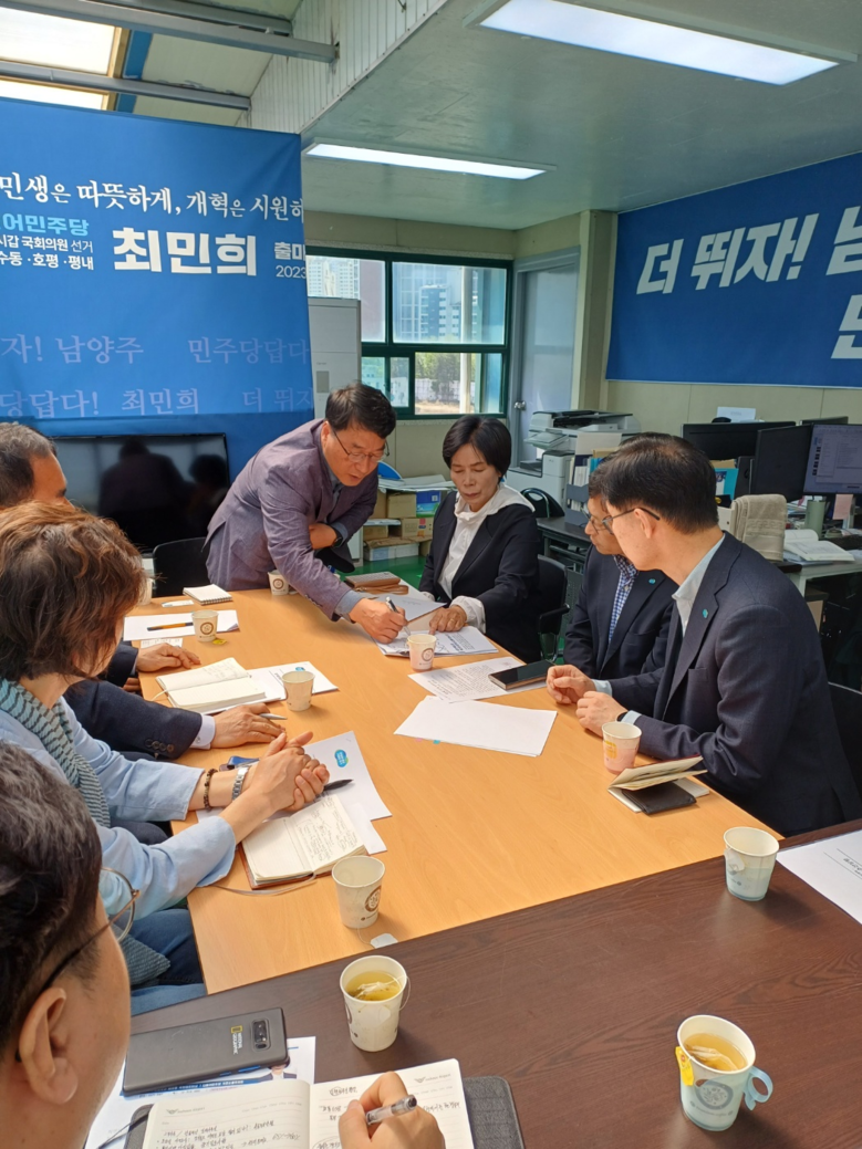 최민희 당선인 사무소는 오늘(19일) 최 당선인이 경기도 행정2부지사와 만난 자리에서 지하철 9호선 평내호평·마석역 분선연장과 경기도립병원 유치 등 지역현안에 대한 협력을 요청했다고 밝혔다.