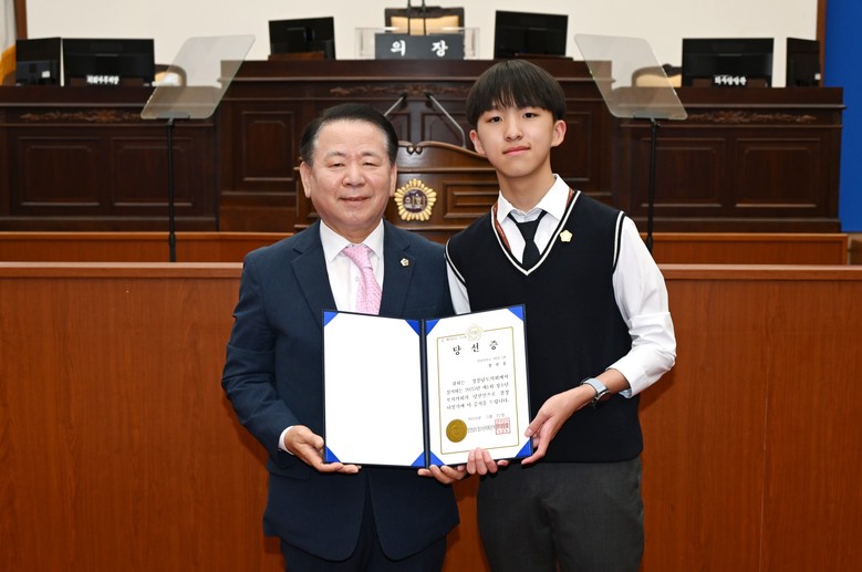 지역구 의원이신 이재두 도의원(창원6)은 “청소년이 미래를 바꾼다”는 메시지를 담아 “오늘 모의의회 경험을 통해 청소년 여러분이 사회 문제에 능동적으로 참여하는 민주시민으로 성장하길 기대한다”라고 격려하면서 수료증을 전달하였다.