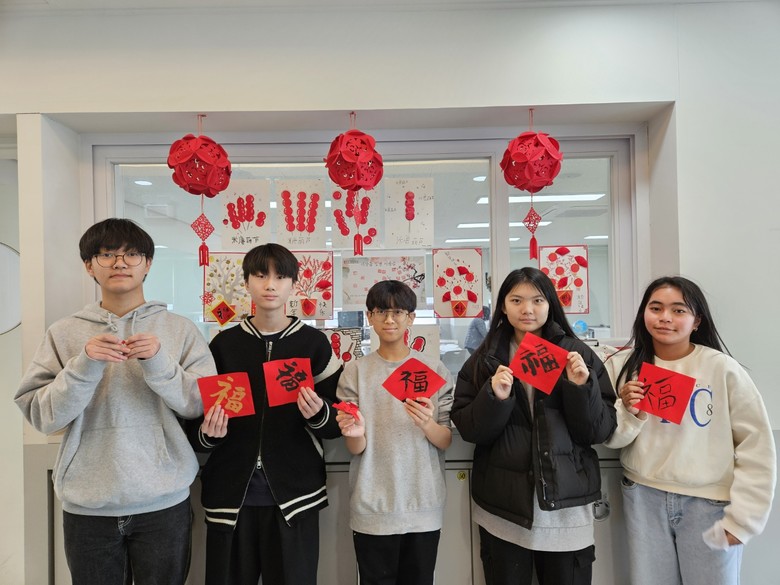 중등 중국어캠프에서도 중국 춘절과 관련된 풍습을 탐구하고, 전통 공예인 홍빠오 제작과 창문 장식 전지 공예를 체험하였다. 한자 '복'을 써서 백복도를 제작하고, 새해 덕담을 배우는 과정에서 언어적 감각과 표현 능력을 발휘하도록 하였다. 춘절 문화 퀴즈와 세뱃돈으로 물건을 사는 활동을 통해 경제적 개념과 실생활 적용 능력을 체험적으로 학습하고 중국과 한국의 설 음식 문화를 비교하며 문화적 차이를 이해할 수 있었다.