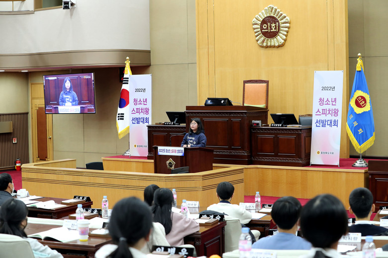 ‘청소년 스피치왕 선발대회’는 도내 초·중학교 청소년을 대상으로 합리적 공감토론 체험을 통한 의회민주주의 학습 기회를 제공하기 위해 기획된 행사로 위해 2018년부터 개최되어 올해 5회째를 맞았다. ‘20년, ’21년은 코로나19로 인해 온라인 비대면 행사로 개최됐고, 올해는 방역 지침 완화로 도의회 본회의장에서 대면 행사로 치러졌다.