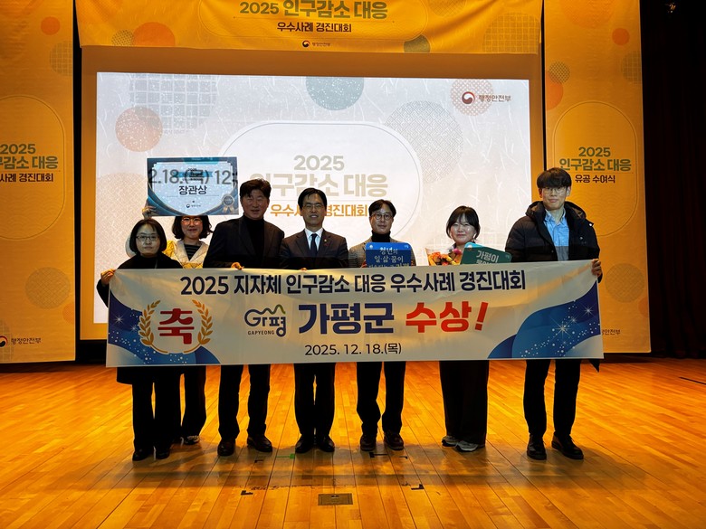 [가평군 세계타임즈=송민수 기자] 가평군이 행정안전부가 주관한 ‘2025년 인구감소 대응 우수사례 경진대회’에서 인구감소 대응 우수 지자체로 평가받아 장관상을 수상했다.