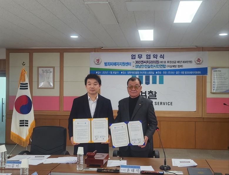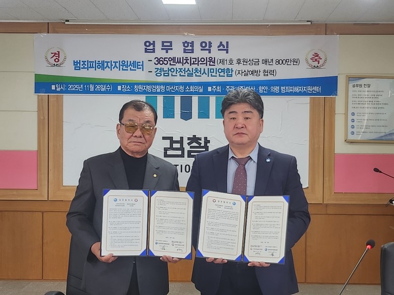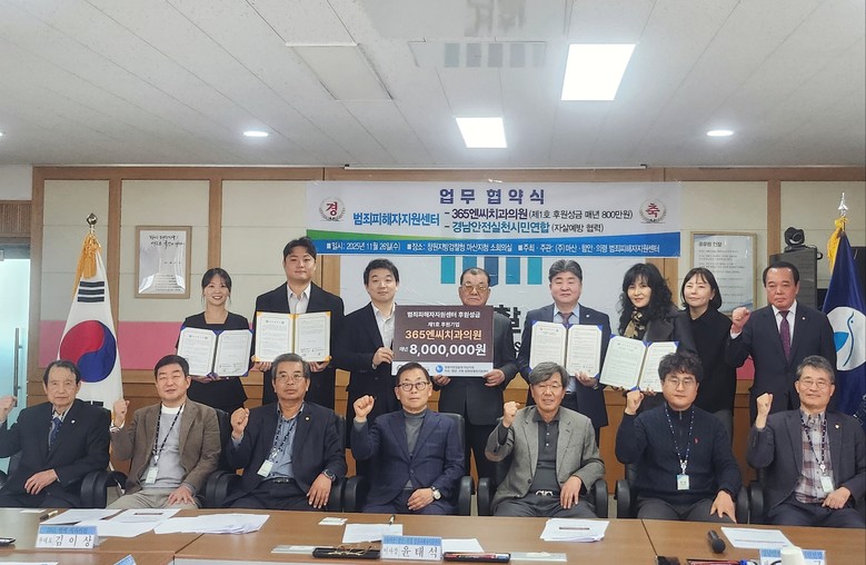 한편 김종식 사무처장은 “범죄피해자들이 겪는 심리적 위기와 경제적 부담이라는 이중고를 덜기 위해 이번 MOU를 추진했다”며 “365엔씨치과의원을 통한 비급여 진료비 감면 혜택, 경남안전생활실천시민연합을 통한 정신건강 위기군에 대한 자살예방과 자살유족 심리상담·교육 지원 등 실질적인 도움을 제공할 것”이라고 강조하였고, 이번 협약을 계기로 범죄피해자들의 회복과 사회복귀를 위한 다양한 지원활동을 지속적으로 확대해 나갈 계획이다.