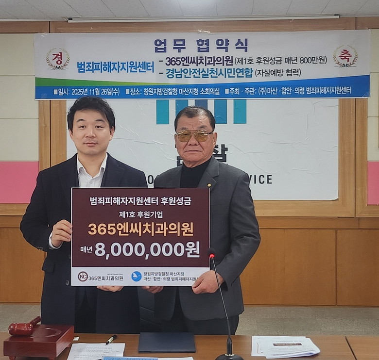 또한 365엔씨치과의원은 범죄피해자 보호·지원을 위하여 범죄피해자지원센터에 2026년부터 매년 800만원을 후원하기로 하여, 제1호 후원기업으로 선정되었다.