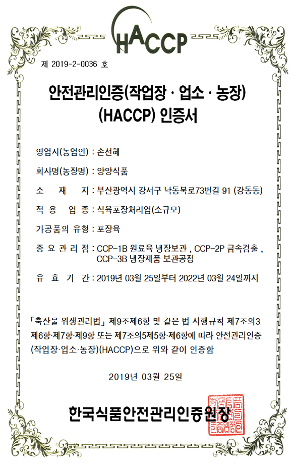 양양식품은 연예인들 입소문으로 인해 닭 가슴살 맛과 품질로 인정받아 닭 가슴살 업계 최초로 연예인들과 런칭 쇼케이스를 열었고 해썹인증과 함께 바른먹거리의 식생활 문화에 앞장서고 있다.