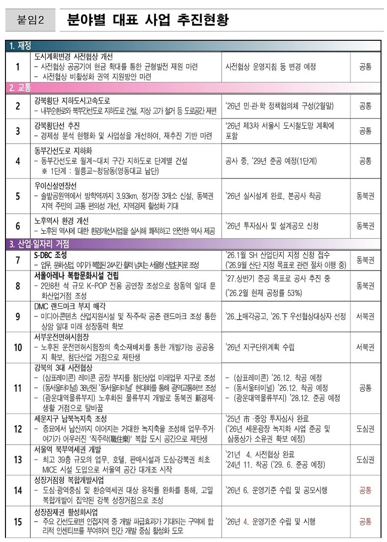 < 【교통】 강북지하도시고속도로·강북횡단선 등 핵심 8대 과제에 집중 투자…공간 대혁신>