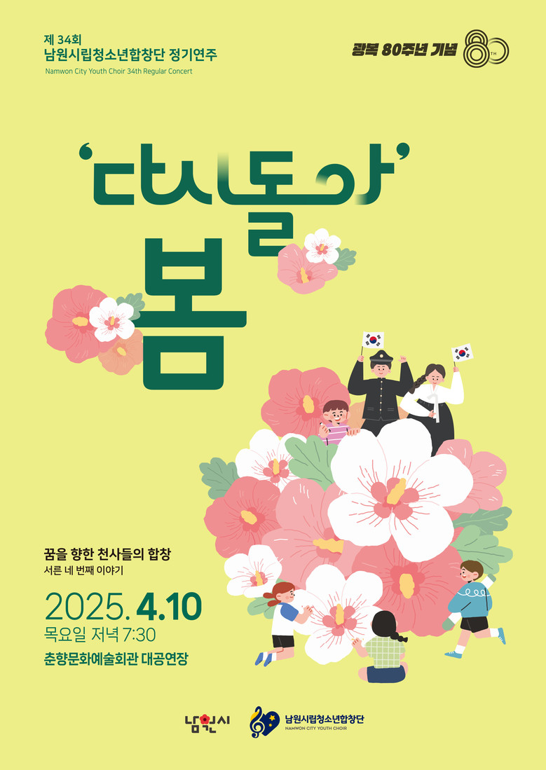 문화예술과장은 “청소년합창단이 매년 수준 높은 무대로 시민들에게 감동을 선사해 온 만큼, 올해 정기연주회 역시 기대가 크다. 특히 광복 80주년을 맞아 독립운동의 의미를 되새기는 뜻깊은 공연이 열리게 되어 더욱 의미가 깊다”라고 전했다